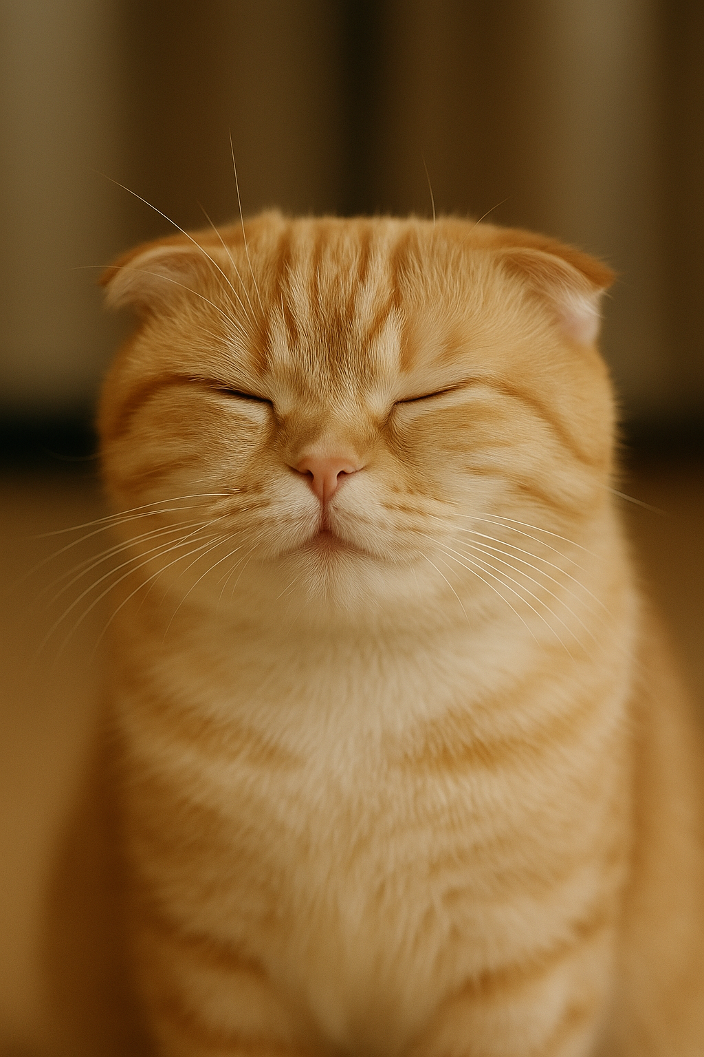 눈을 살짝 찡그린 듯 가늘게 뜨는 건 **“아~ 지금 기분 좋아”**라는 뜻이에요. 집사의 손길을 받으며 골골송을 부를 때 이런 표정을 자주 볼 수 있죠. 이런 순간은 집사-냥이의 친밀도가 최고조에 달했음을 의미합니다. (˘︶˘).。.:*♡