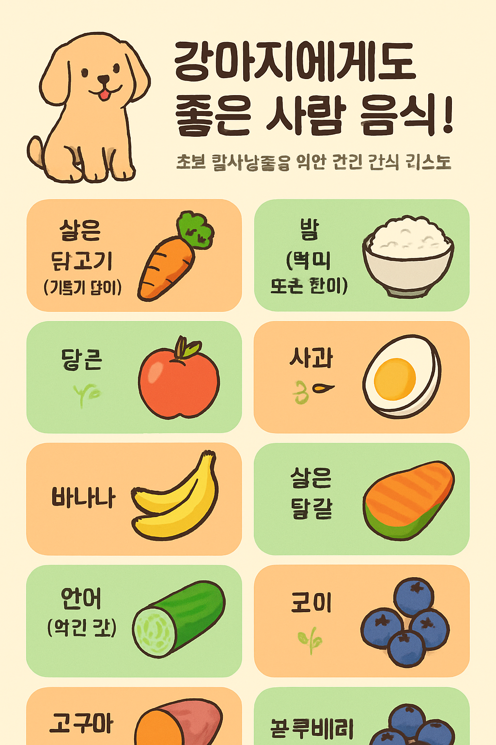 🐾 강아지에게도 좋은 사람 음식! 초보 집사님들을 위한 건강 간식 리스트 💛