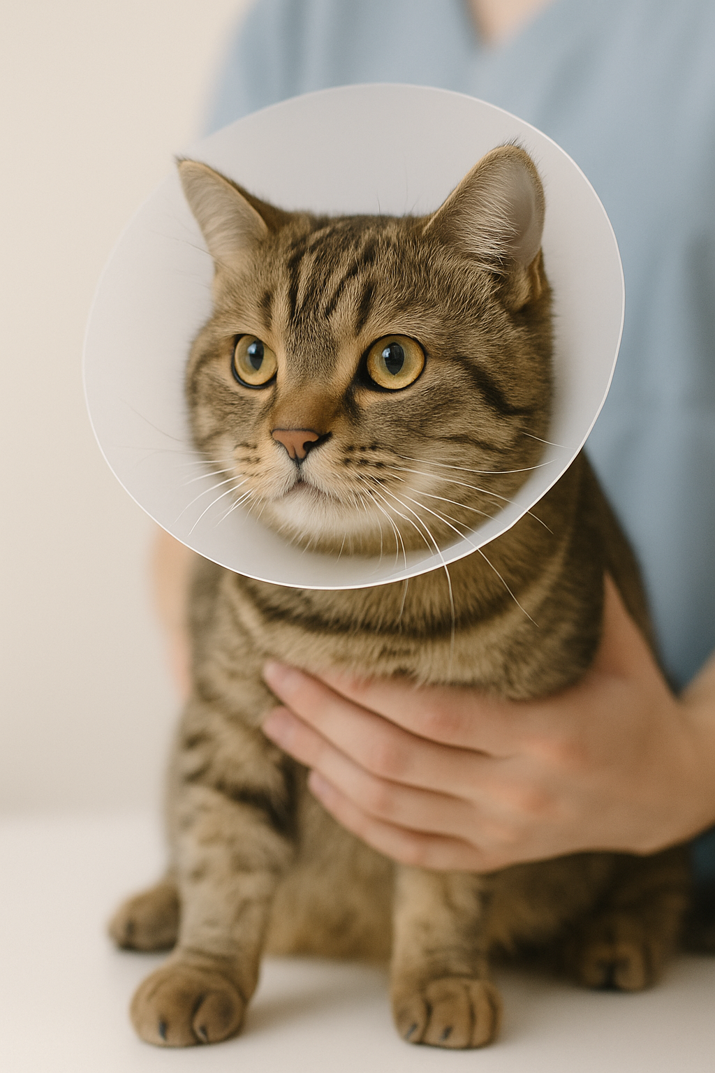 → 실밥 제거 전까지 엘리자베스 칼라 착용, 상처 관리 필수.